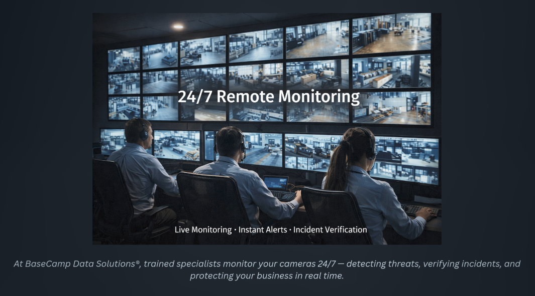 Ensure 24/7 surveillance for your construction site with BaseCamp Data Solutions®. Our intelligent CCTV remote monitoring and enterprise surveillance solutions offer reliable, scalable, and secure protection — giving your business round-the-clock security and peace of mind